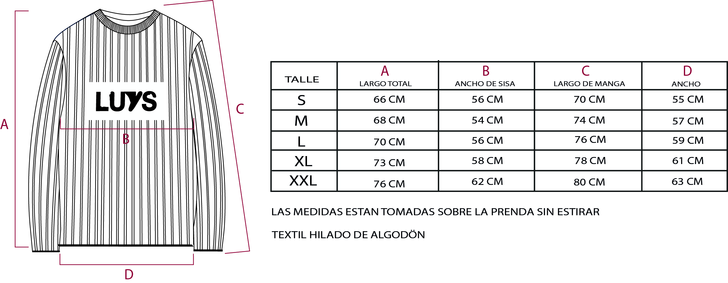 Disponible en Azul y Negro, del talle S al XL
